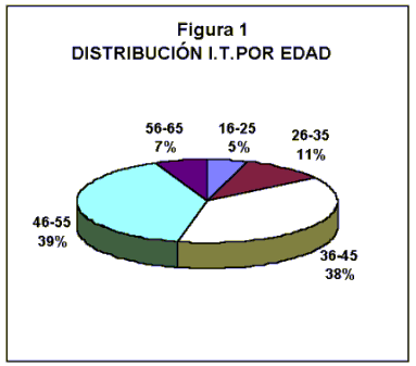 %), siendo el grupo de edad de 46 a 55 años el que más