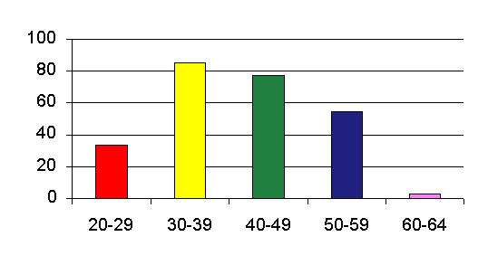 La distribución por edades queda reflejada en la Figura 2 observándose que el 65% de los participantes se encontraban en edades comprendidas entre los 30 y 49 años.