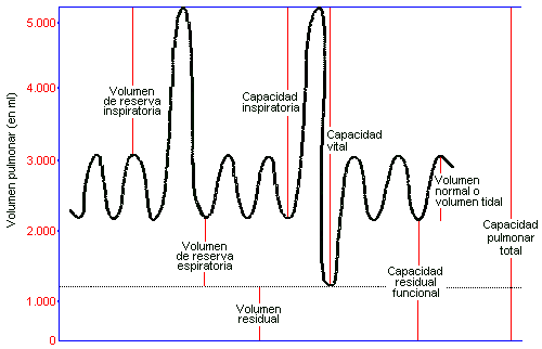La suma de la capacidad vital y el volumen residual es la cantidad total de aire que pueden contener los pulmones y se denomina Capacidad Pulmonar Total.