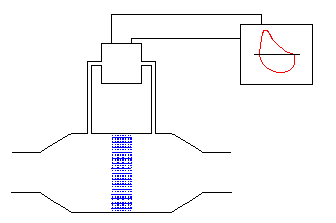 Figura 4. Neumotacómetro. El flujo pasa a través de una resistencia conocida. La diferencia de presiones antes y después de la resistencia es recogida por el transductor, que por integración de flujos calcula los volúmenes.