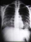 una radiografía de Torax (frente y perfil) presentando lesiones